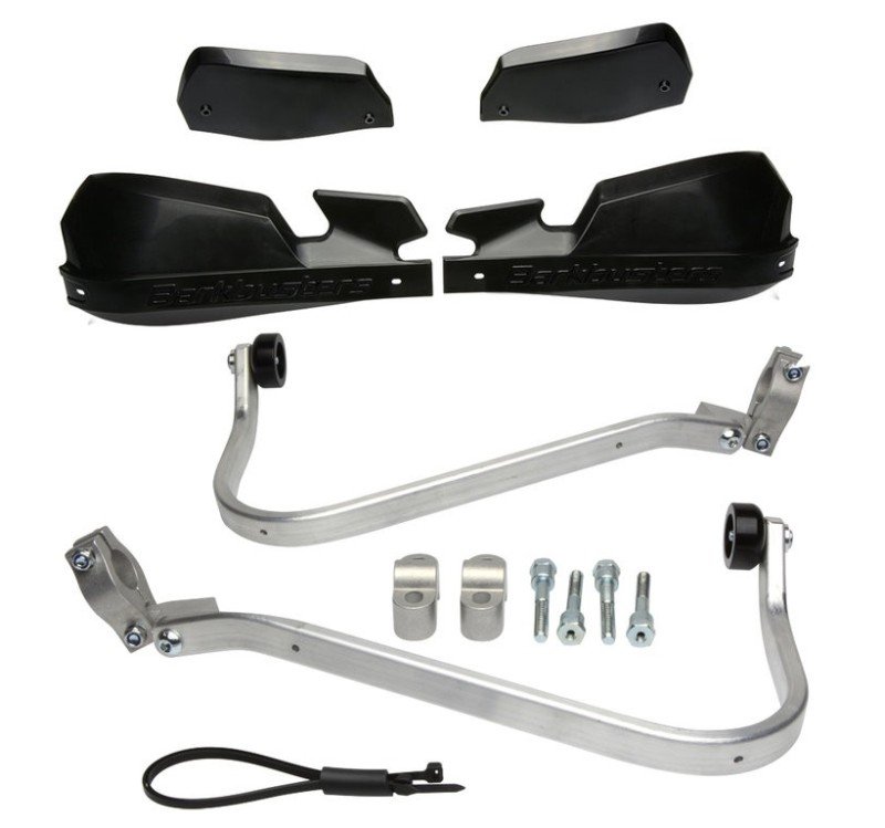 Los kits de paramanos Barkbusters VPS para BMW F 650 GS y F 650 GS Dakar incluyen las barras de aluminio, el material de montaje (incluidas alzas de manillar), los guardamanos de plástico y las extensiones extra para los guardamanos.