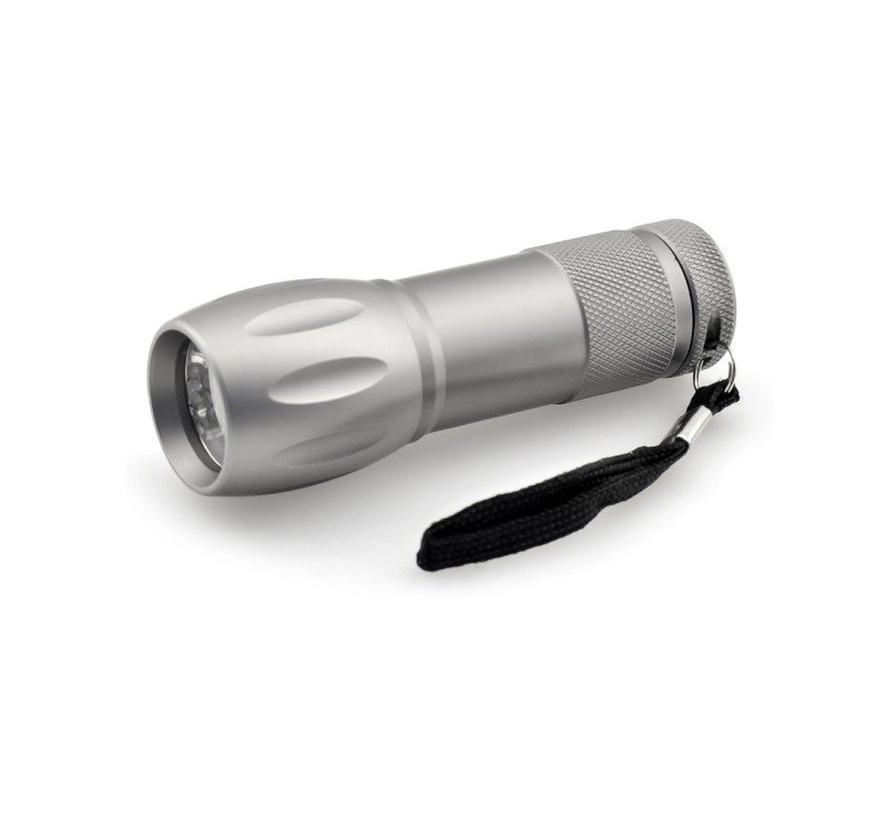 Linterna de aluminio gris 9 LEDs. Incluye paquete de pilas