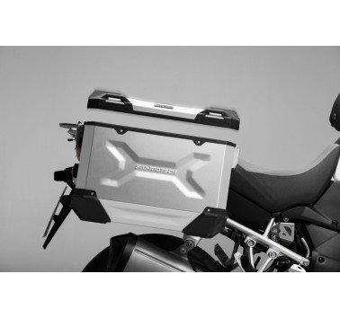 - También disponible como sistema de maletas TRAX ADV con dos maletas laterales, soportes laterales específicos del modelo, adaptadores y juego de candados.