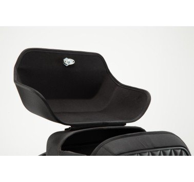 - Aspecto atractivo: combinación de tejidos textiles en color negro de poliéster 600D y cuero artificial de color negro con elaborados rombos acolchados, elementos de plástico ABS con laminado textil