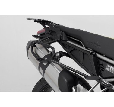 Con esta combinación de soportes laterales SLC y maletas laterales URBAN ABS, SW-MOTECH deja la Aprilia Tuareg lista para viajes algo más largos con más equipaje.
