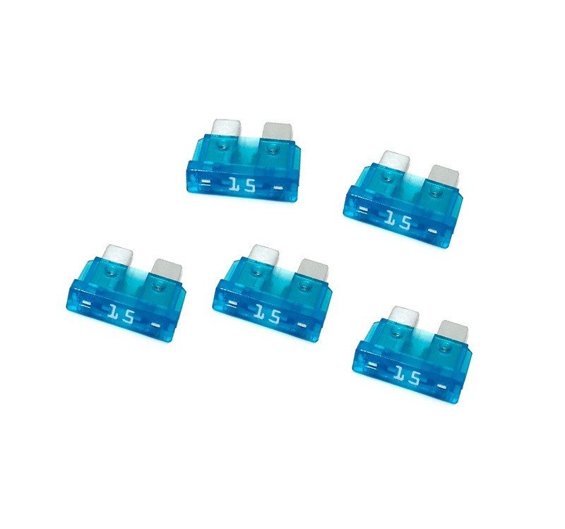 Bolsa de 5 fusibles planos de 15A. Color azul