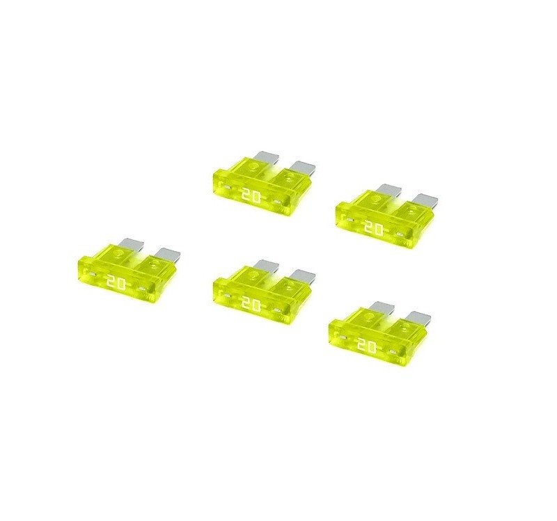 Bolsa de 5 fusibles planos de 20A. Color amarillo
