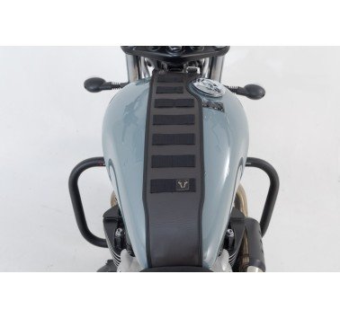 La correa para depósito SLA de diseño retro le da a la motocicleta un toque personal. Las cintas de sujeción ofrecen una fijación flexible a la par que segura de las bolsas adicionales Legend Gear.
