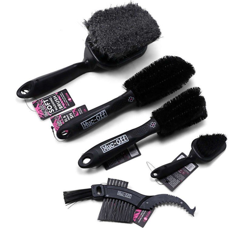 - Con los cinco cepillos Muc-Off en una práctica bolsa de almacenamiento: