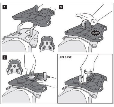 - La placa adaptadora se fija de forma segura al portaequipajes STREET-RACK sin necesidad de usar herramientas