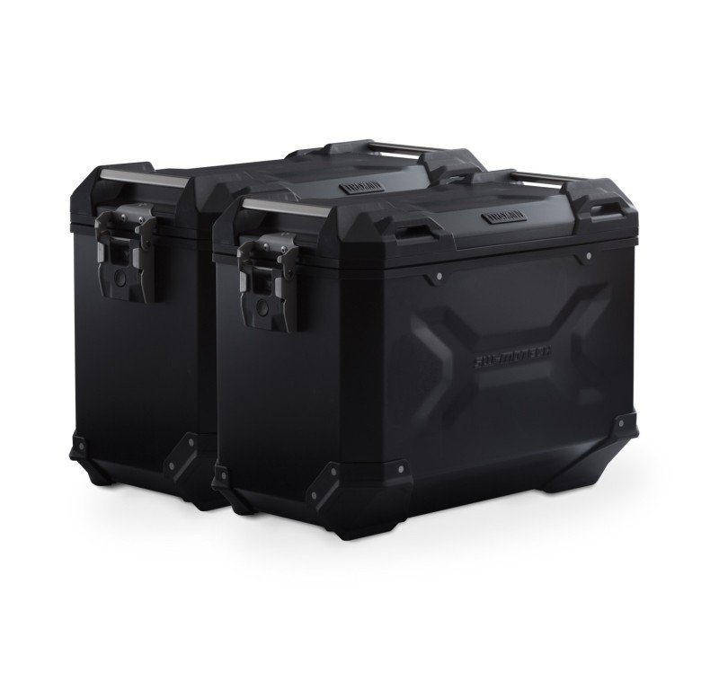 Las resistentes maletas de aluminio TRAX ADV son ideales para cualquier tipo de trayecto: las impresiones del diseño contribuyen a la estabilidad del material de la estructura de aluminio soldado de 1,5 mm de espesor. La tapa completamente extraíble con asas de transporte de aluminio anodizado y cierres rápidos facilitan la colocación y retirada de la maleta de motocicleta, y los bordes laterales biselados crean una elevada separación con el suelo para los trayectos con curvas. Esta completa solución ofrece todos los componentes necesarios para poder embarcarse en viajes largos con las TRAX: dos maletas laterales TRAX ADV impermeables, dos soportes laterales de SW-MOTECH extraíbles, kit de adaptadores, juego de candados, limitador de apertura y sistema antirrobo a un precio muy atractivo.