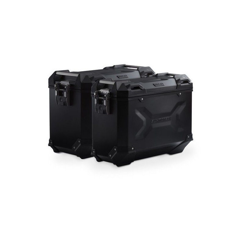 Las resistentes maletas de aluminio TRAX ADV son ideales para cualquier tipo de trayecto: las impresiones del diseño contribuyen a la estabilidad del material de la estructura de aluminio soldado de 1,5 mm de espesor. La tapa completamente extraíble con asas de transporte de aluminio anodizado y cierre rápido facilitan la colocación y retirada de la maleta de motocicleta, y los bordes laterales biselados crean una elevada separación con el suelo para los trayectos con curvas. Esta completa solución ofrece todos los componentes necesarios para poder embarcarse en viajes largos con las TRAX: dos maletas laterales TRAX ADV impermeables, dos soportes laterales de SW-MOTECH extraíbles, kit de adaptadores, juego de candados, limitador de apertura y sistema antirrobo a un precio muy atractivo.