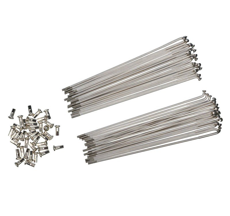 - El juego contiene 36 radios de acero inoxidable y 36 tuercas niqueladas