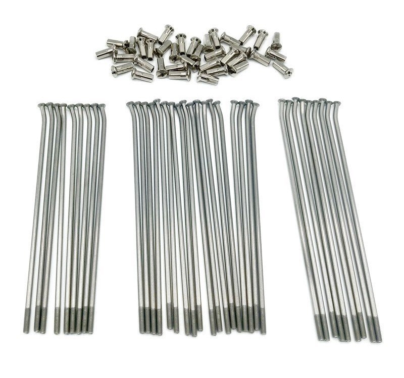 - El juego contiene 36 radios de acero inoxidable y tuercas niqueladas
