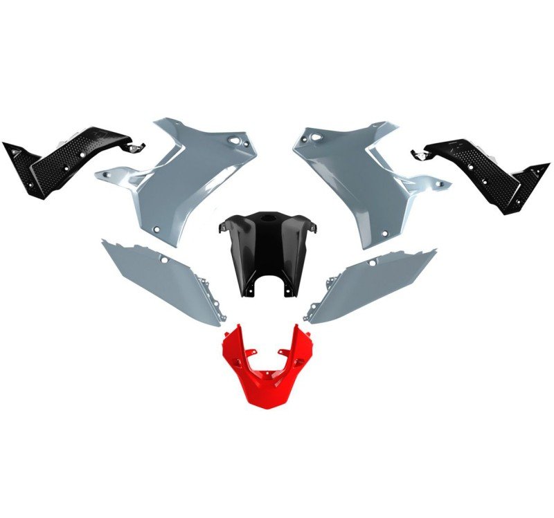 El kit de plástico rediseñado fabricado con polipropileno ecológico flexible, resistente a los arañazos y brillante le dará a esta icónica moto de aventura un lavado de cara completo dedicado al uso de Hard Enduro. Está compuesto por dos carenados, tapa del depósito de gasolina, dos paneles laterales centrales, dos paneles laterales de matrícula trasera y guardabarros trasero. Usando los tornillos originales es plug and play, ¡fácil de ensamblar!