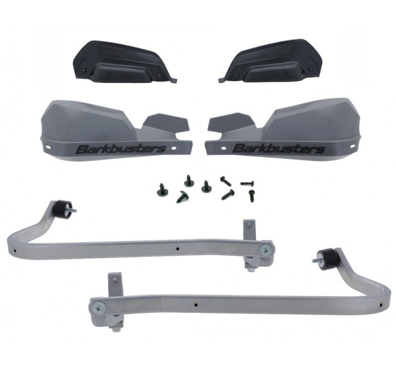 Los kits de paramanos Barkbusters VPS incluyen las barras de aluminio, el material de montaje, los guardamanos de plástico y las extensiones extra para los guardamanos.