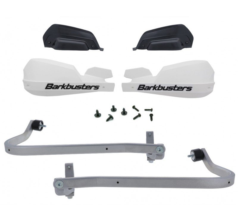Los kits de paramanos Barkbusters VPS incluyen las barras de aluminio, el material de montaje, los guardamanos de plástico y las extensiones extra para los guardamanos.