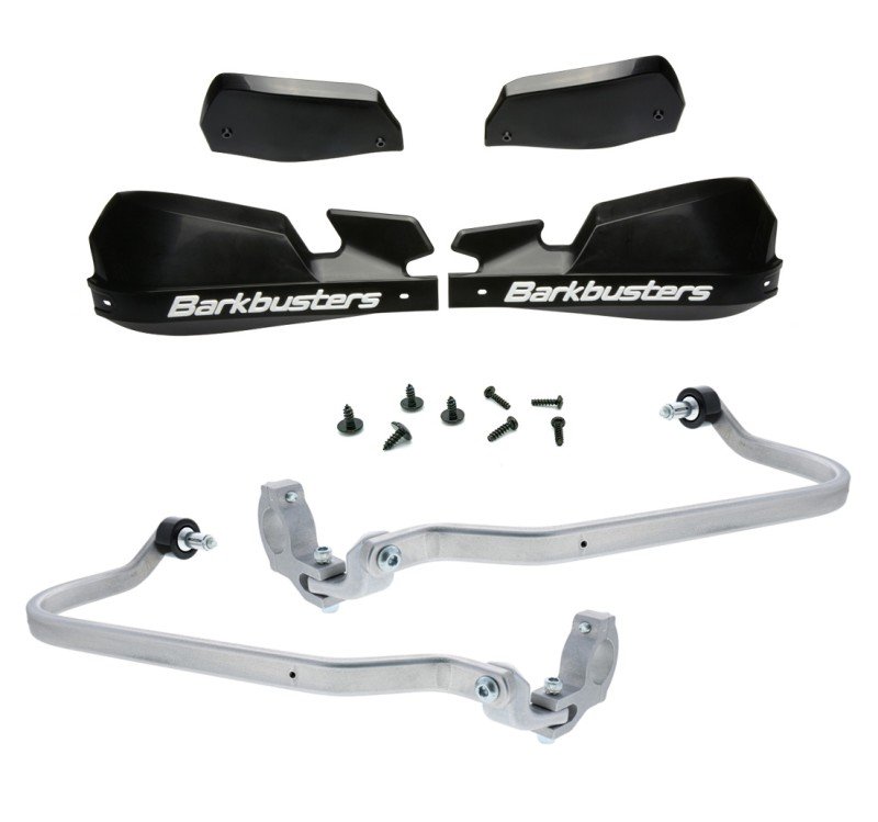 Los kits de paramanos Barkbusters VPS incluyen las barras de aluminio, el material de montaje, los guardamanos de plástico y las extensiones extra para los guardamanos.