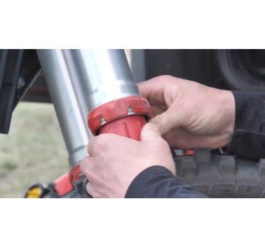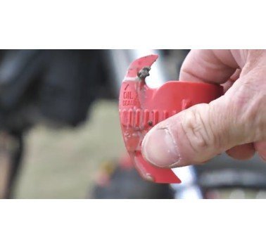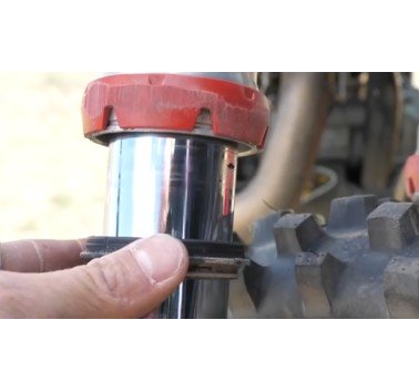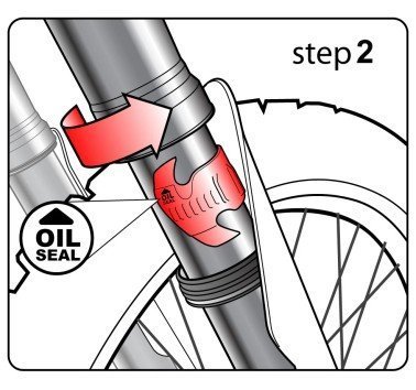 Para usar el limpiador, basta con bajar el guarda polvo y ajustar el limpiador en el tubo de la horquilla. A continuación, insértelo en el retén y el gírelo. El diseño del limpiador mantiene la posición y el ángulo adecuados a medida que gira alrededor de su tubo de horquilla.