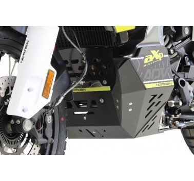 Cubrecarter Husqvarna Norden 901 TOURING. Compatible con el caballete central original KTM / HUSQVARNA - 3,6Kg. Pegatina incluida pero no pegada en la entrega. Fabricada en polietileno de alta densidad de 8 mm de espesor, esta cubrecarter ha sido diseñada para proteger el bloque del motor y el depósito de los impactos. La versión TOURING utiliza un sistema de fijación especial en la parte trasera que encaja en los agujeros de las tapas laterales para evitar que se dañe la parte inferior del bloque motor. Se proporciona una espuma de 8 mm de grosor para colocarla entre el depósito y la protección y evitar la fricción. Por último, la placa antibarro evitará la entrada de diversos residuos en el interior sin afectar a la refrigeración. ¿Las ventajas sobre el aluminio? Más ligero, más silencioso, el plástico no genera vibraciones y no se queda deformado después de un golpe.