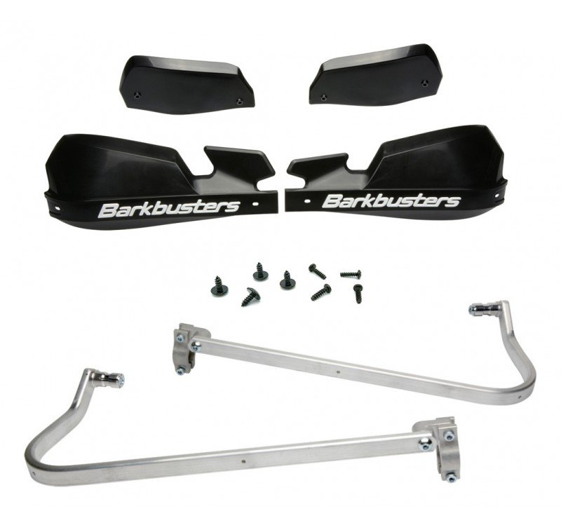 Los kits de paramanos Barkbusters VPS para G 650 GS incluyen las barras de aluminio, el material de montaje, los guardamanos de plástico y las extensiones extra para los guardamanos.
