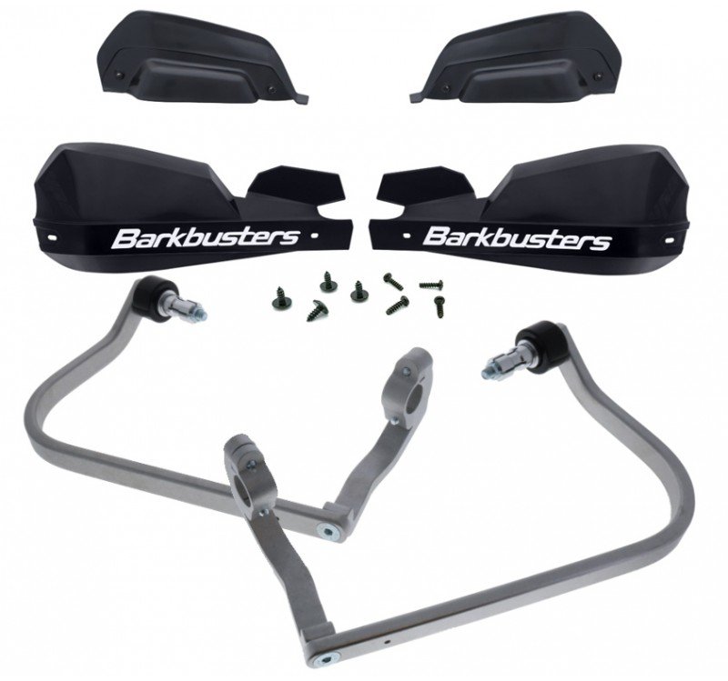 Los kits de paramanos Barkbusters VPS para Suzuki V-Strom 1050 incluyen las barras de aluminio, el material de montaje, los guardamanos de plástico y las extensiones extra para los guardamanos.