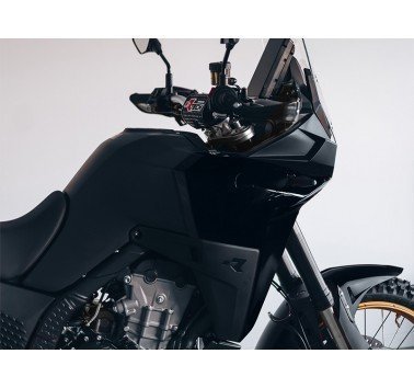 Kit de plástico fabricado en tecnopolímero, diseñado para maximizar la estética y resistir impactos. El kit transforma el estilo de la moto con un guardabarros trasero más largo, un panel trasero para la matrícula y entradas de aire del radiador de nuevo diseño.