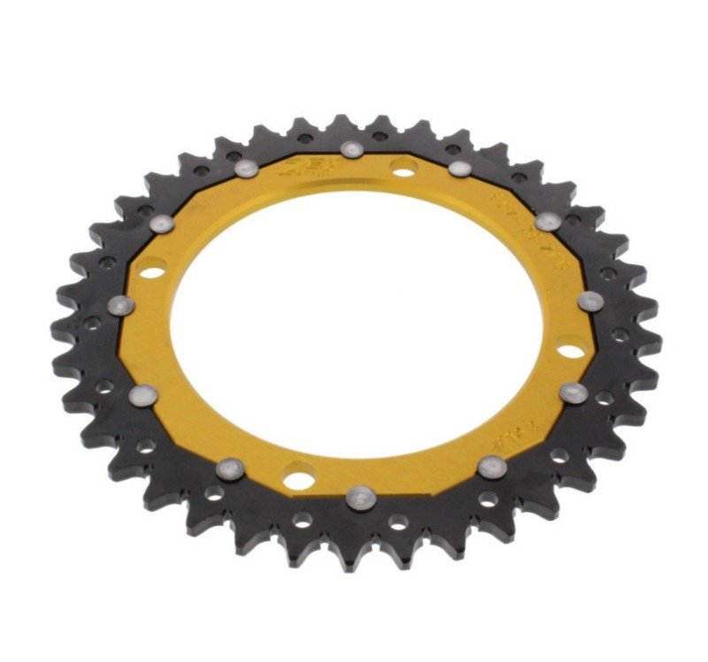 Corona de alta calidad con parte interna de aluminio dorado y parte dentada de acero, esta combinación de materiales hace que sea ligera y resistente al mismo tiempo