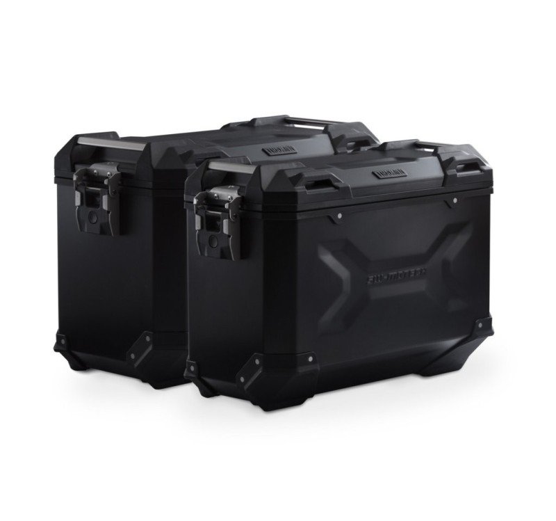 Las resistentes maletas de aluminio TRAX ADV son ideales para cualquier tipo de trayecto: las impresiones del diseño contribuyen a la estabilidad del material de la estructura de aluminio soldado de 1,5 mm de espesor. La tapa completamente extraíble con asas de transporte de aluminio anodizado y cierres rápidos facilitan la colocación y retirada de la maleta de motocicleta, y los bordes laterales biselados crean una elevada separación con el suelo para los trayectos con curvas. Esta completa solución ofrece todos los componentes necesarios para poder embarcarse en viajes largos con las TRAX: dos maletas laterales TRAX ADV impermeables, dos soportes laterales de SW-MOTECH extraíbles, kit de adaptadores, juego de candados, limitador de apertura y sistema antirrobo a un precio muy atractivo.