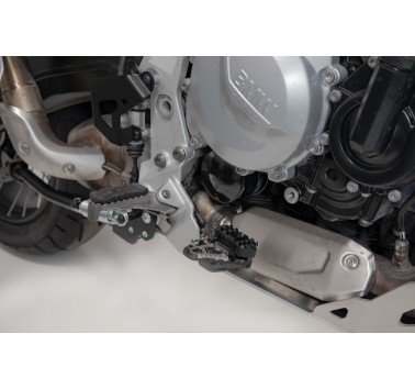 SW-MOTECH elabora las extensiones en una aleación de aluminio, fresada y muy resistente, con superficie anodizada de color negro y un estribo de acero inoxidable. Para conseguir una adaptación ergonómica óptima, la elevación del pedal de freno se puede ajustar en dos niveles: 22 o 27 milímetros.