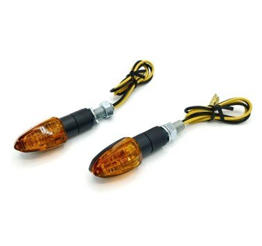 Pareja de intermitentes universales de brazo corto con goma antivibración. Homologación marcado "E".