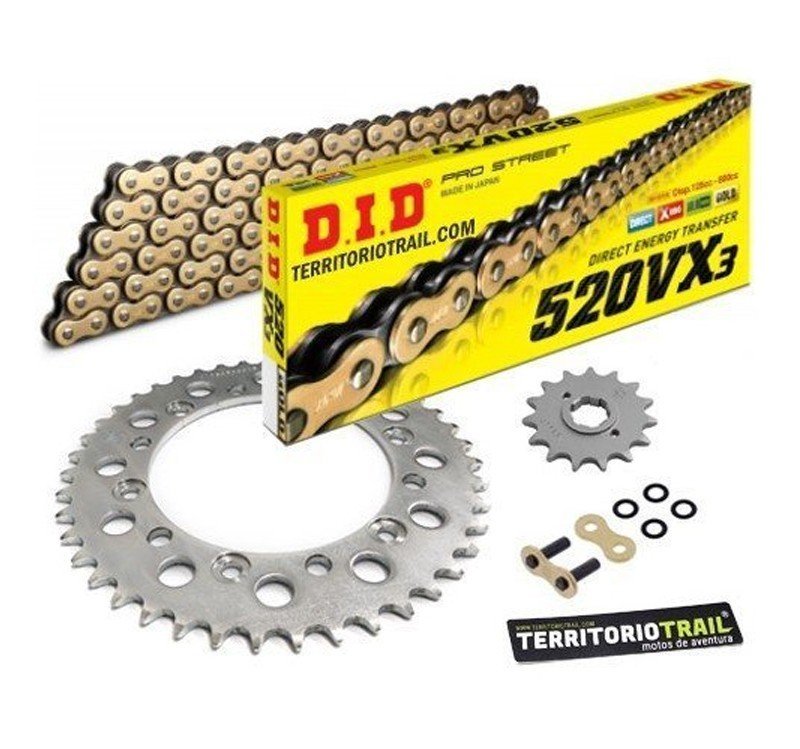 Kit de transmisión DID 520vx3 dorada (14/47/112) relación original XR600R de 1988 a 1990
