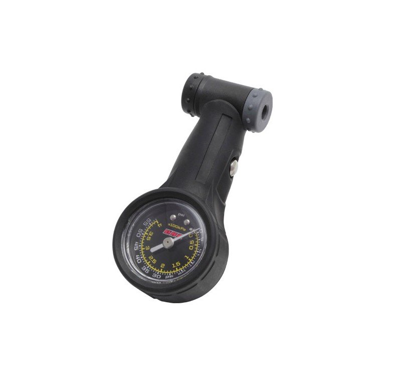 Manómetro de aire especialmente diseñado para motocicletas y bicicletas de montaña. Botón de microajuste para un ajuste sensible de la reducción de aire.