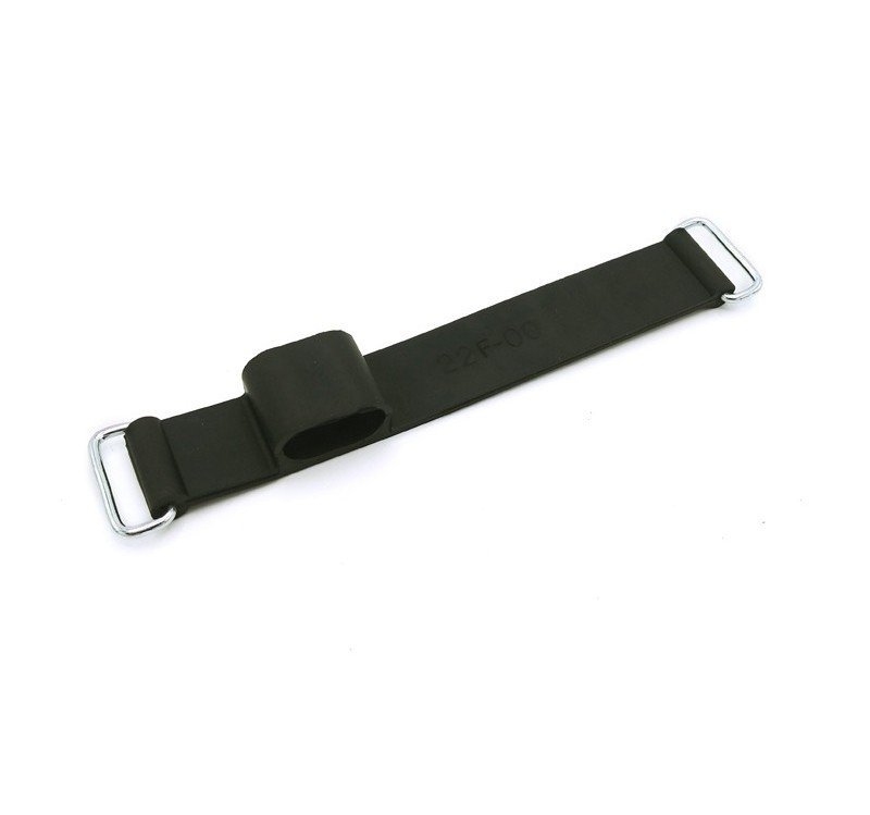 Esta correa de goma para sujección de batería se completa con los anillos de acero y el hueco portafusible