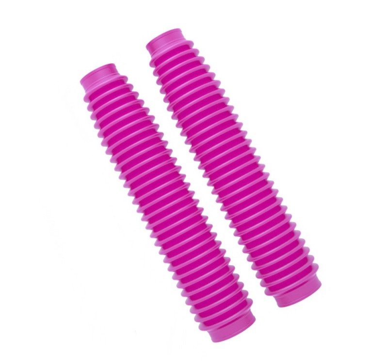 Ver descripción completaJuego de fuelles rosas para barras de horquilla de 41 mm. Renuevan la apariencia de su moto y mantienen los retenes de horquilla limpios