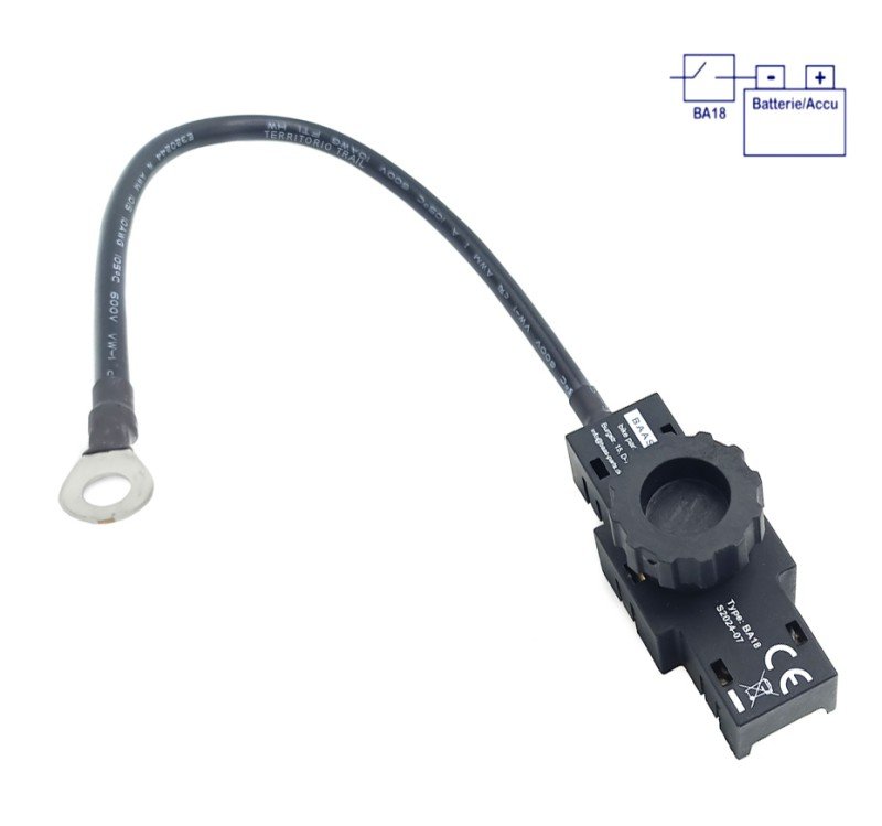 Para su instalación conecte el cable negativo a un lado del desconector y el otro extremo al borne negativo de la batería