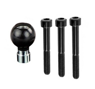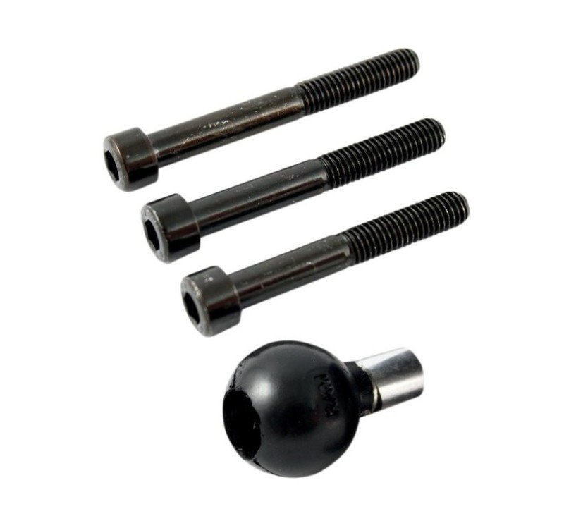 Bola con 3 tornillos pasantes de 8mm y diferentes longitudes para acoplarse a cualquier orificio roscado, por ejemplo tornillos de torretas. Permite acoplar cualquiera de nuestros brazos RAM