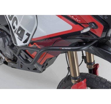 Las protecciones laterales de motor de SW-MOTECH aportan ese extra de seguridad al depósito, al revestimiento y a otros componentes. Estos accesorios, diseñados específicamente para cada tipo de motocicleta, se adaptan perfectamente al aspecto del vehículo y ofrecen al mismo tiempo un ángulo de inclinación permitido óptimo. Los elementos de montaje se pueden colocar de forma fiable y sencilla en los puntos de fijación originales.