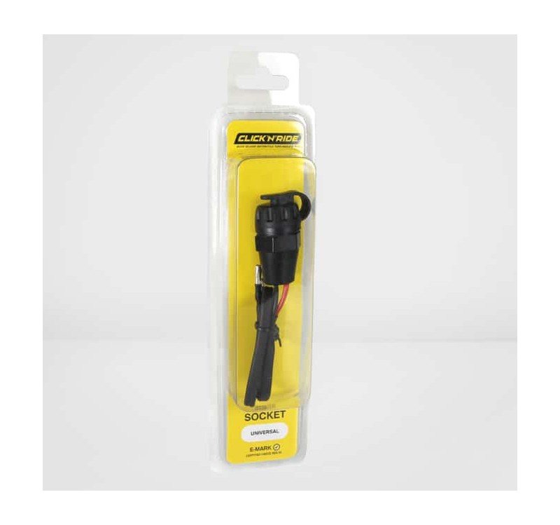 - Toma CLICKnRIDE ® universal con protector de antipolvo y humedad.