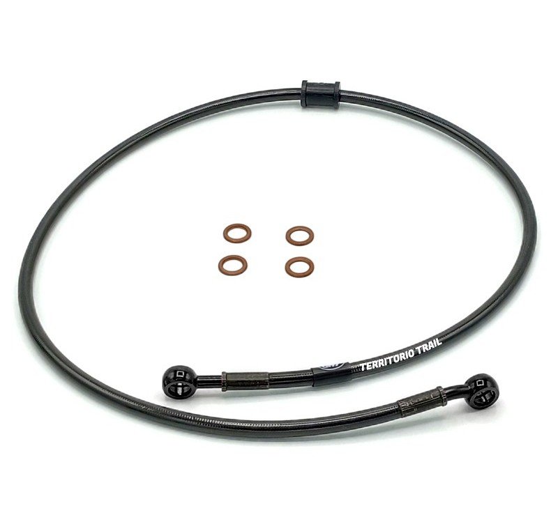 Latiguillos de freno  JMP confeccionados con terminales y racores de acero inoxidable, prensados con tuberia de acero trenzado y revestida de teflón. De esta manera se elimina la sensación de freno esponjoso, que se tiene a partir de latiguillos convencionales de caucho. El acero inoxidable también ofrece una perfecta protección contra la oxidación.