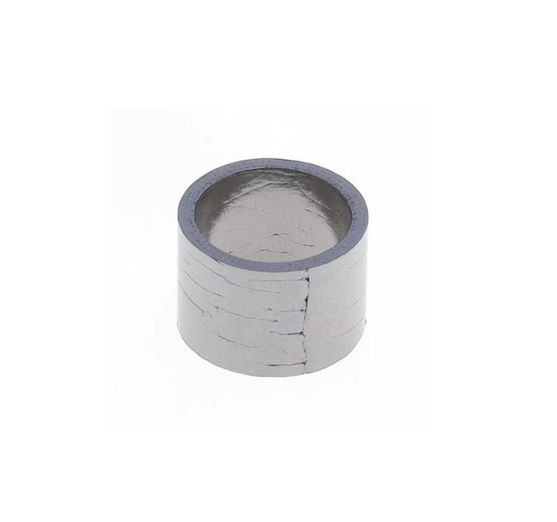 - Esta junta impregnada de grafito y carbono encaja en el tubo de entrada al silenciador para sellar el tubo de escape.