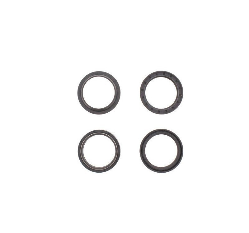 Este kit contiene 2 retenes de horquilla y 2 guardapolvos. Perfectos para reemplazar originales partidos ó agrietados que provocan fugas de aceite.