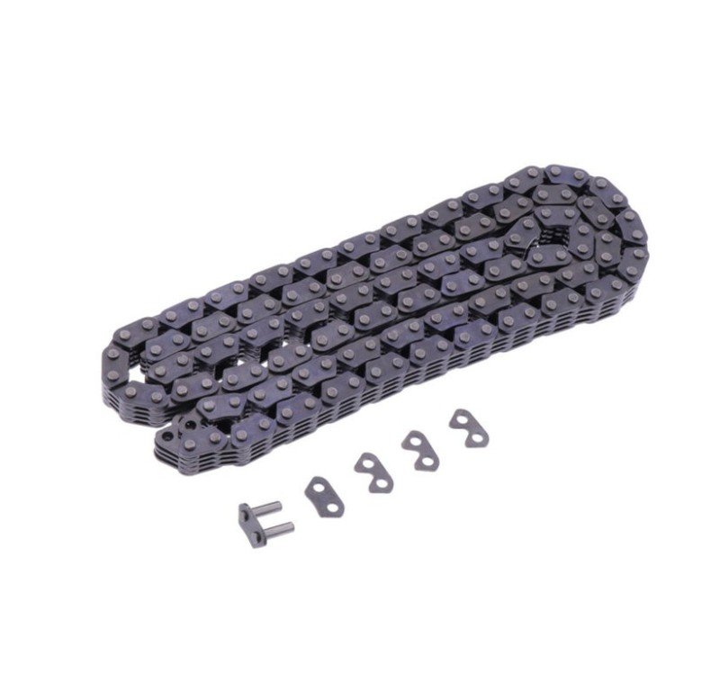 Cadena abierta con enganche por remache. Para el montaje abra la cadena de distribución antigua y conéctela a la nueva cadena de distribución, tire de ella y luego remache la nueva cadena de distribución. Esto le ahorrará varias horas de trabajo, ya que no es necesario desmontar completamente el motor.