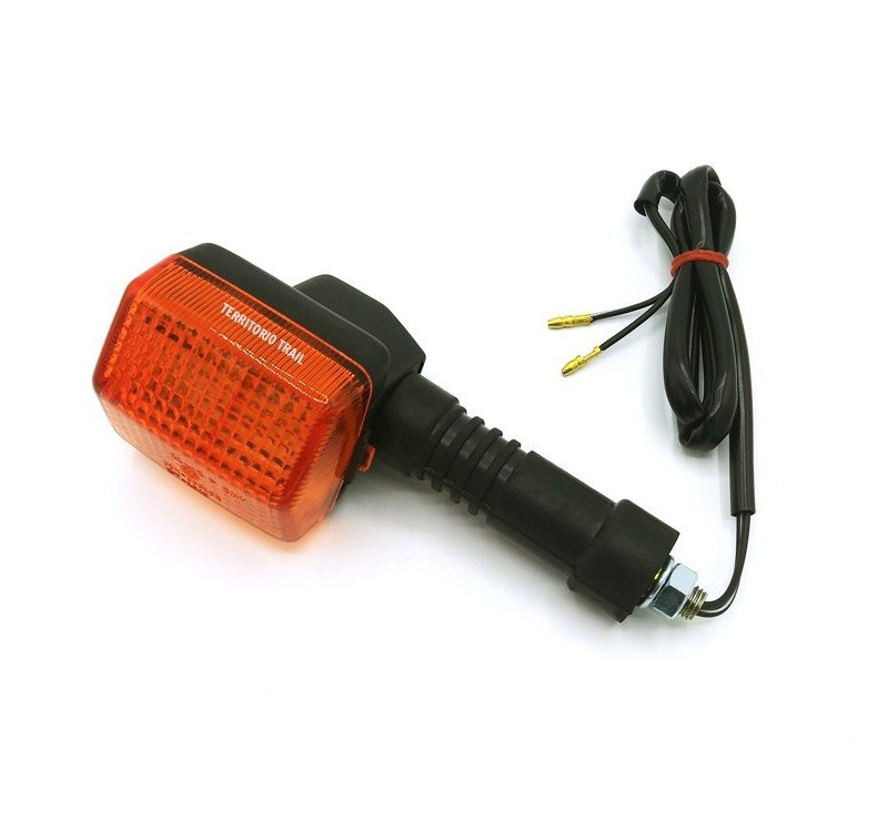En nuestra tienda online usted tiene la oportunidad de comprar intermitentes para reparar y mantener su moto trail al día. Este producto corresponde en forma y función a la pieza original, no requiere modificaciones. También disponemos la versión corta (ref. nº 13632), con el mismo diseño y medidas de la lente pero con el vástago de menor longitud; Se pueden instalar en la parte trasera para que no sobresalgan ante una caida y reducir vibraciones. Todos los intermitentes que comercializamos en Territorio Trail tienen la marca de homologación en la lente, por lo que son legales en la calle y aprobados para ITV.