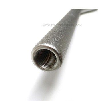 - Listo para montar en la moto e instalar todos los elementos: Ya dispone agujeros a cada lado para el montaje de las piñas de luces y mandos y los extremos roscados en su interior para poder instalar los contrapesos y los paramanos originales (ó los específicos de Barkbusters).