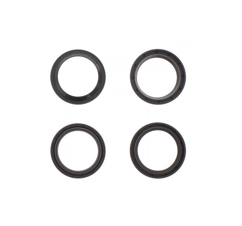 Este kit contiene 2 retenes de horquilla y 2 guardapolvos. Perfectos para reemplazar originales partidos ó agrietados que provocan fugas de aceite.