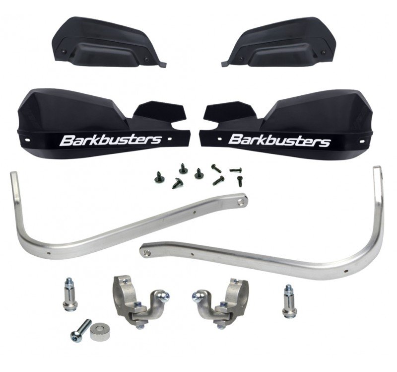 Los kits de paramanos Barkbusters VPS incluyen las barras de aluminio, el material de montaje, los guardamanos de plástico y las extensiones extra para los guardamanos.