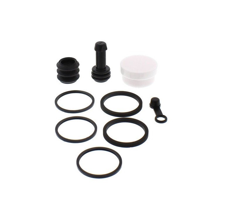 Kit de juntas para reparación de los dos pistones de pinza delantera. También incluye los fuelles de goma y el tapón del tornillo de purga