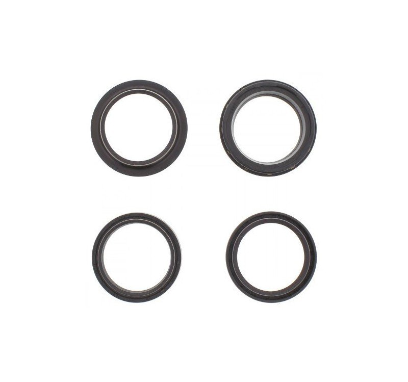 Este kit contiene 2 retenes de horquilla y 2 guardapolvos. Perfectos para reemplazar originales partidos ó agrietados que provocan fugas de aceite.