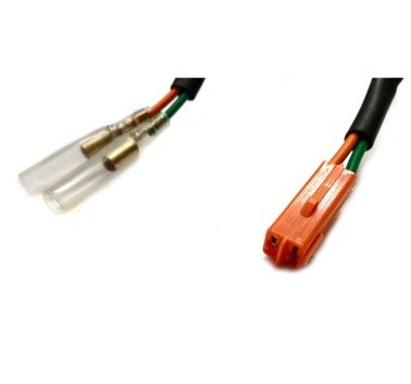 ¡No hay necesidad de empalmes! Adaptador de cable más común en Honda y Kawasaki. En un extremo del cable tiene conector de intermitentes originales y en el otro conector para intermitentes universales