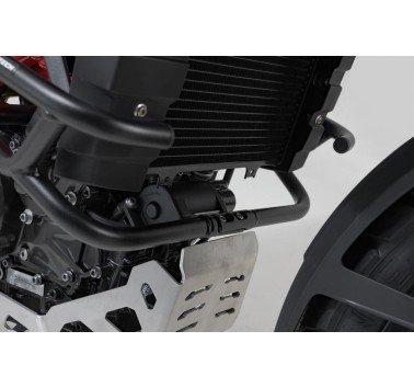 Las protecciones laterales de motor de SW-MOTECH aportan ese extra de seguridad al depósito, al revestimiento y a otros componentes. Estos accesorios, diseñados específicamente para cada tipo de motocicleta, se adaptan perfectamente al aspecto del vehículo y ofrecen al mismo tiempo un ángulo de inclinación permitido óptimo. Los elementos de montaje se pueden colocar de forma fiable y sencilla en los puntos de fijación originales sin necesidad de realizar modificaciones en la motocicleta.