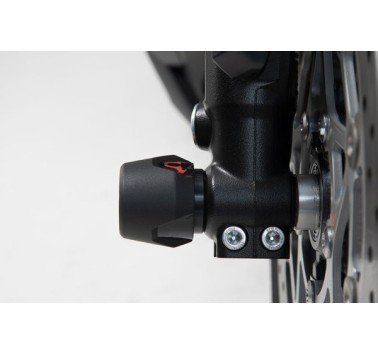 Los topes anticaídas de plástico resistente a la abrasión proporcionan un extra de seguridad a la horquilla: el diámetro de 50 milímetros crea una amplia superficie para lograr una distribución de fuerza óptima. De elegante diseño, los topes se adaptan por completo a la estética de la motocicleta. Todas las piezas necesarias para el montaje vienen incluidas en el contenido de la entrega.