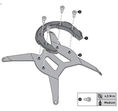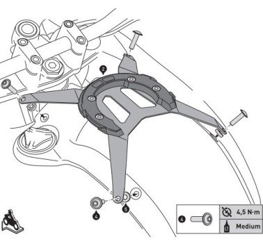 En este modelo de anillo de depósito PRO, el anillo de depósito se ubica sobre un elemento de montaje específico del modelo. El elemento de montaje está firmemente atornillado al depósito de la motocicleta.