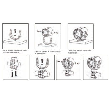 7. Soporte de cuerpo de lámpara de instalación multiángulo y soporte ajustable para control remoto inalámbrico.